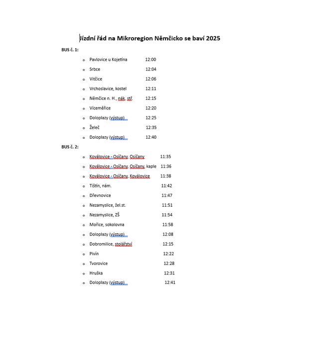 Úvod > Aktuality > Jízdní řád na Mikroregion Němčicko se baví 2025 v Doloplazech