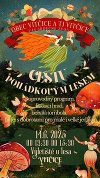 Jste srdečně zváni na tradiční "POHÁDKOVÝ LES", který se bude letos konat 14.6. 2025 na Výletišti u lesa. Start v 13:30 - 15:30.