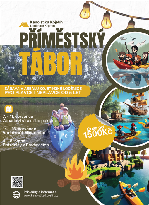 Kanoistika Kojetín pořádá o letních prázdninách tři příměstské tábory pro děti od 5 do 15 let v areálu loděnice v Kojetíně. Tábory probíhají vždy od pondělí do pátku v čase od 8 do 16 hodin. Termíny: Tábor 1 z názvem Záhada ztraceného pokladu od 7.7. do 11.7.2025, Tábor 2 s názvem Vodní svět Minecraftu od 14.7. do 18.7.2025, Tábor 3 s názvem Prázdniny v Bradavicích od 4.8. do 8.8.2025. Cena tábora je 1.750 Kč. Děti čeká sport, zábava a dobrodružství na vodě i na souši. Přihlášky a bližší informace naleznete na webových stránkách Kanoistiky Kojetín.