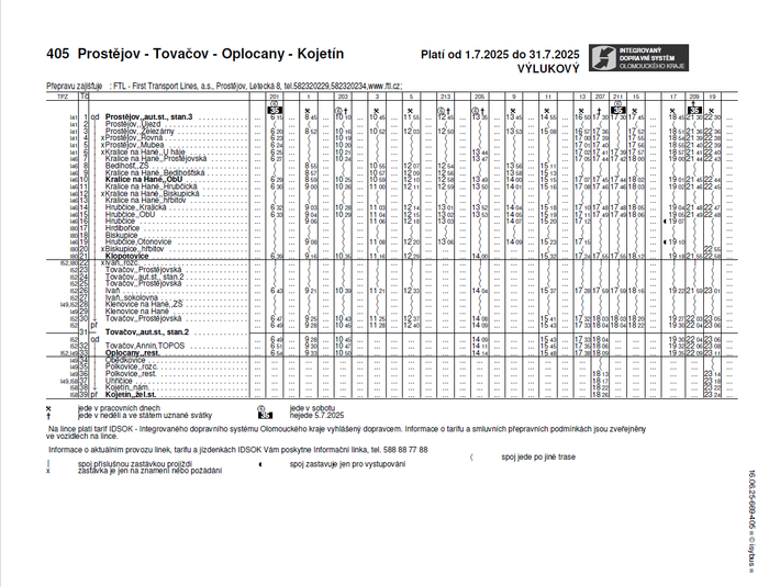Na linky 780405 a 780932 byly vypracovány výlukové jízdní řády, ve kterých je upřesněno vedení, časová poloha spojů a obsluha jednotlivých zastávek.