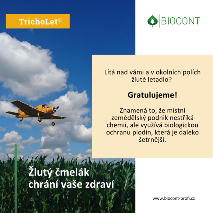 Společnost BIOCONT LABORATORY bude provádět leteckou aplikaci biologickým prostředkem TrichoLet, jehož účinnou složkou je drobná parazitická chalcidka Trichogramma evanescens. Tento prostředek bude použit pro ochranu kukuřice před zavíječem kukuřičným.