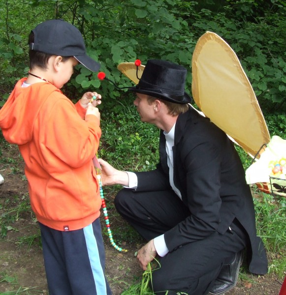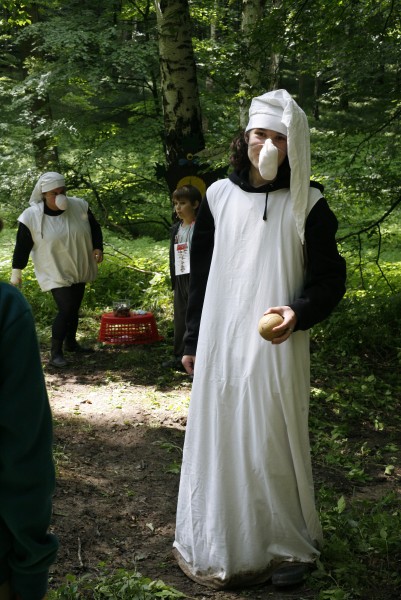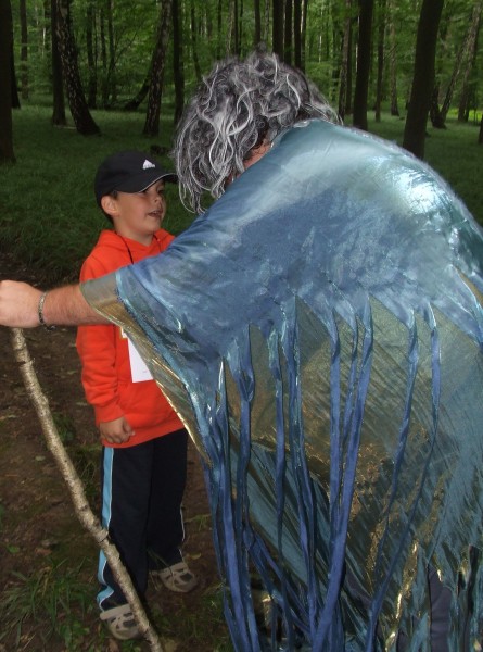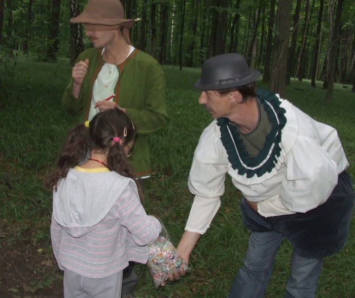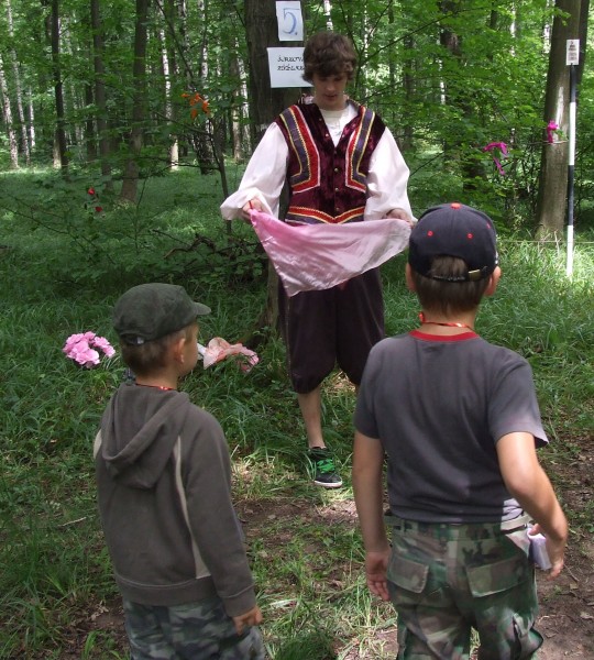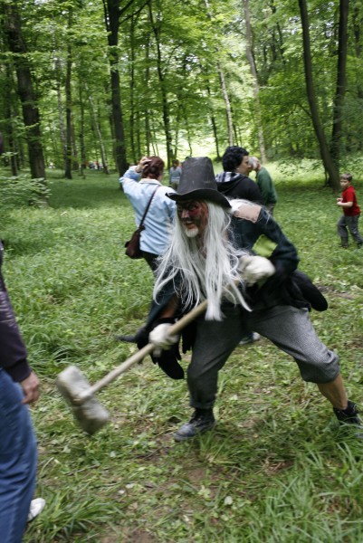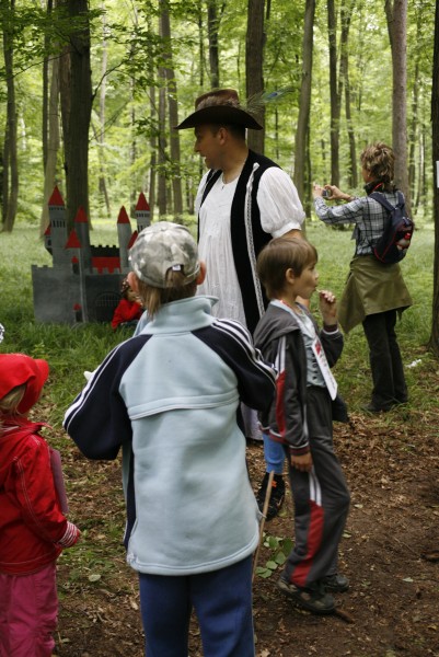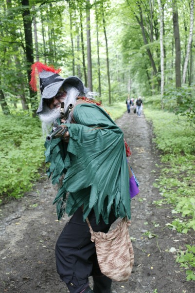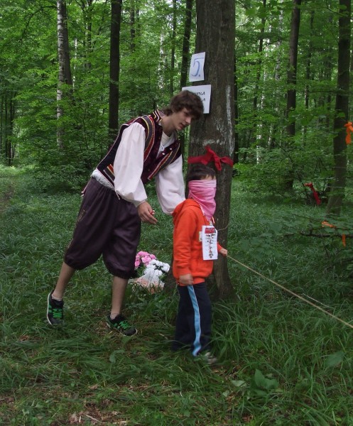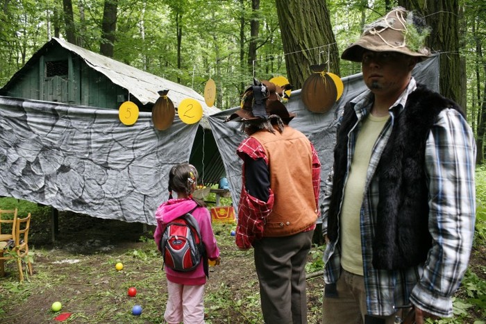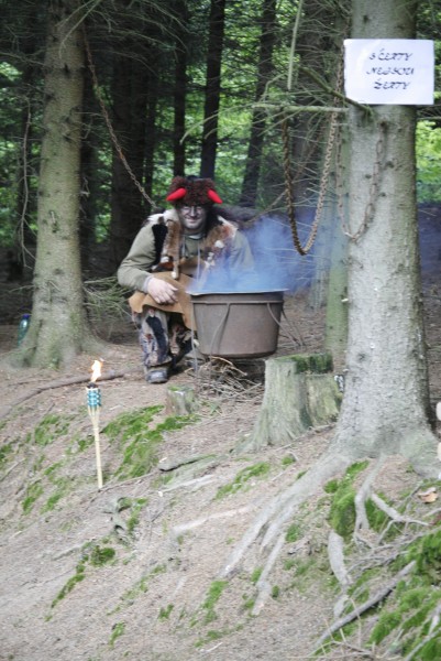 Svým ostřížím zrakem jeden z loupežníků bedlivě sleduje soutěžící děti