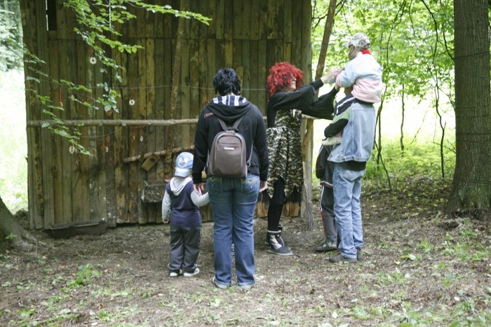 Dřevěného lva děti krmily míčky .....