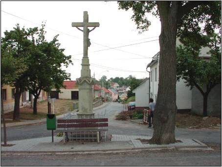 Tento, dříve ještě dřevěný kříž, je zakreslen již na první mapě Vitčic z roku 1833. V roce 1854 uskutečnila obec nákladem 40fn stříbra obnovu již zpráchnivělého dřevěného kříže a zavázala sebe, i své následovníky k jeho opravě nebo novému vystavění. Obec ručila reversem svého majetku, jednalo se o kovárnu č.p. 29, která byla v té době v jejím vlastnictví.
